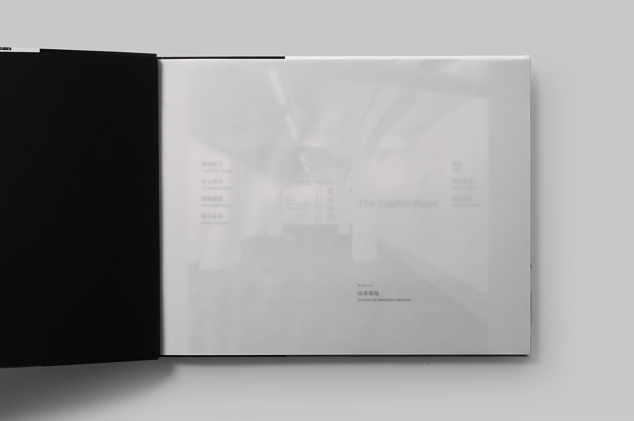 表紙には、スミと光沢のあるニス、そして型押しと黒箔押しを使用し、空間の中に幾重にもレイヤーが感じられるようにデザインした。空間を物質(創造性)で満たすという展覧会コンセプトを、印刷の物質性によって表現したいと考えた。
