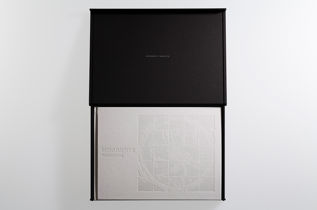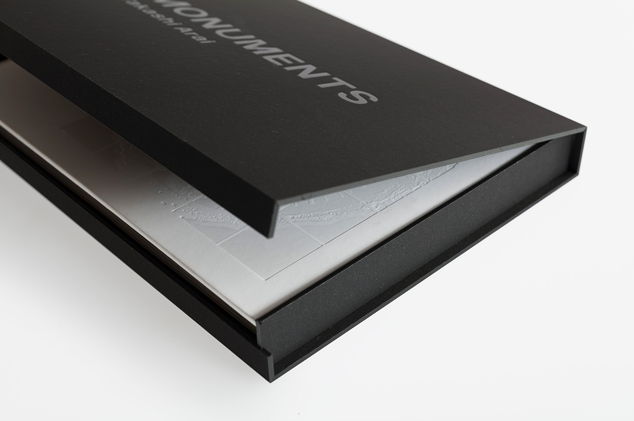 本そのものがひとつのMONUMENTとして存在感を持つように。新井が巡った旅に寄り添うようにデザインした。