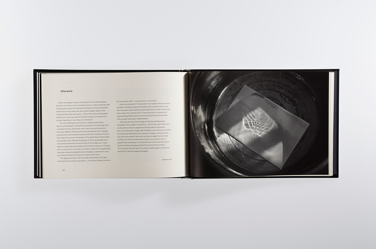 ダゲレオイタイプ(銀板写真)を用いて写真を撮り続ける新井卓の写真集。2011年以降の福島や広島、長崎やアメリカ各地の核のモニュメントを巡る旅と、毎日続けられるダゲレオタイプ・シリーズ、そして新井の旅をめぐるテキストなどで構成されている。