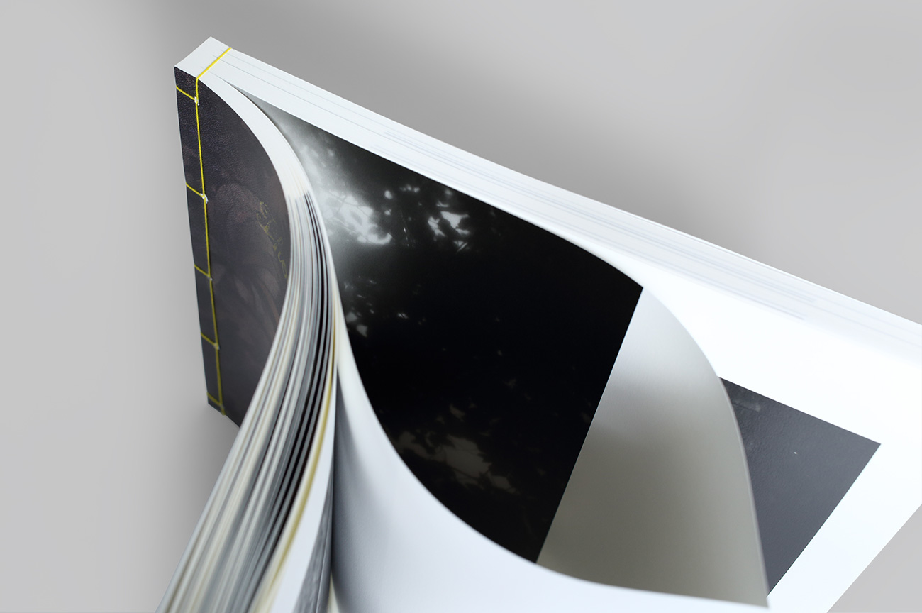 本書のタイトルである「TRYADHVAN(トリャドヴァン)」とは、仏教用語で三世(過去世、現在世、未来世)を指す。本書は、写真家・古賀絵里子の出産の記録であり、これまでの人生の振り返りでもある。その幾重にも重ねられた時間を、和綴じで綴じた。袋とじの中に1ページだけ、光が差し込んだ写真を入れ込み、三世を超えて写真(光)によって繋がる本書のテーマを含ませた。